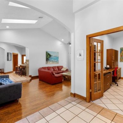 Ceiling Fan(s), High Ceilings, Open Floorplan, Skylight(s), Solid Surface Counters, Solid Wood Cabinets, Split Bedroom, Vaulted Ceiling(s), Walk-In Closet(s)