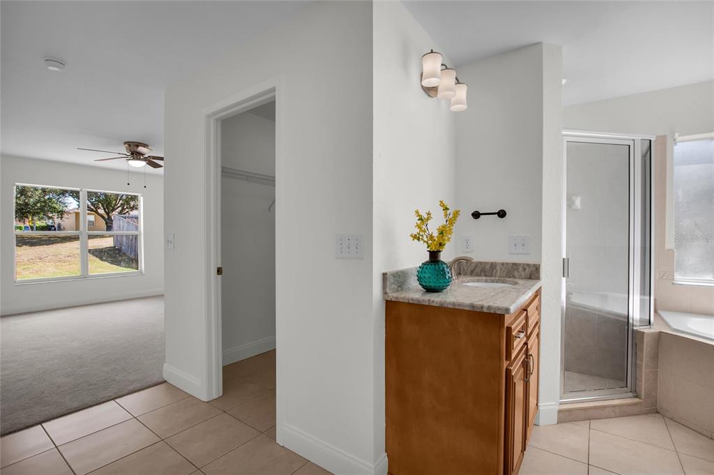 Cathedral Ceiling(s), Crown Molding, Kitchen/Family Room Combo, Open Floorplan, Solid Surface Counters, Solid Wood Cabinets, Split Bedroom, Thermostat, Walk-In Closet(s), Window Treatments