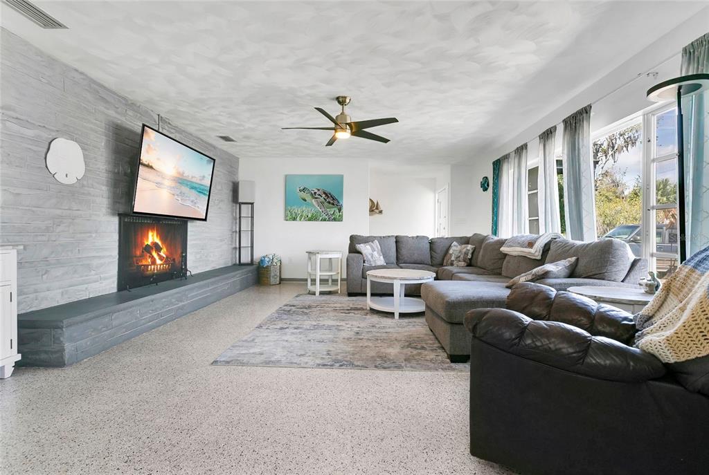 Ceiling Fan(s), Eating Space In Kitchen, Open Floorplan, Solid Surface Counters
