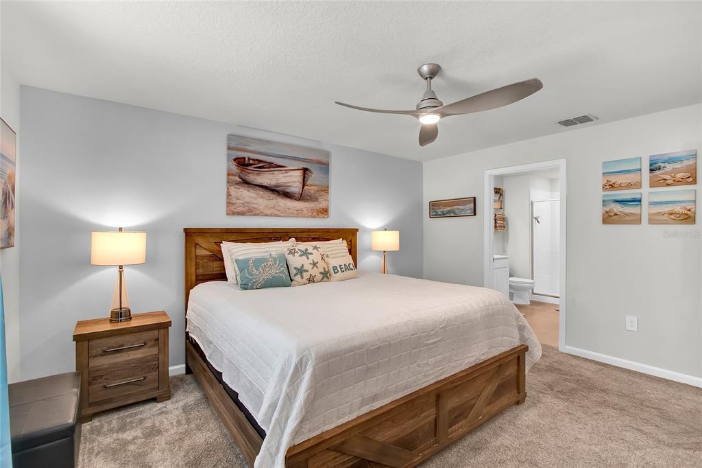 Ceiling Fan(s), Eating Space In Kitchen, In Wall Pest System, Kitchen/Family Room Combo, Open Floorplan, Primary Bedroom Main Floor, Solid Surface Counters, Solid Wood Cabinets, Split Bedroom, Stone Counters, Thermostat, Walk-In Closet(s)