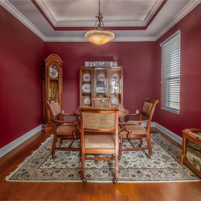 Ceiling Fan(s), Crown Molding, Eating Space In Kitchen, High Ceilings, Kitchen/Family Room Combo, Open Floorplan, Primary Bedroom Main Floor, Solid Wood Cabinets, Stone Counters, Thermostat, Tray Ceiling(s), Walk-In Closet(s), Window Treatments