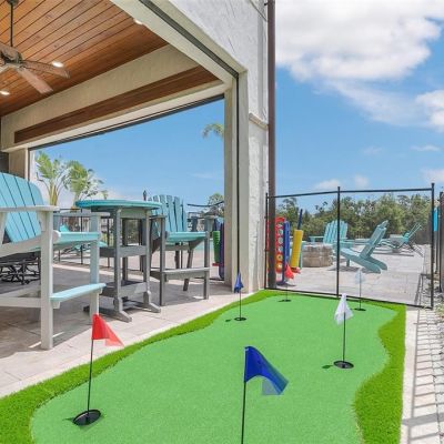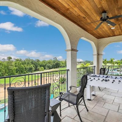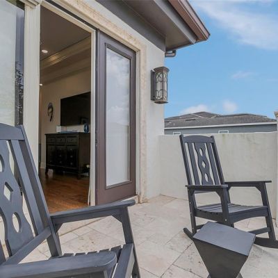 Balcony, French Doors, Irrigation System, Outdoor Grill, Outdoor Kitchen, Sidewalk, Sliding Doors