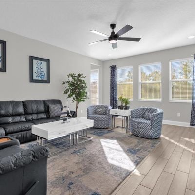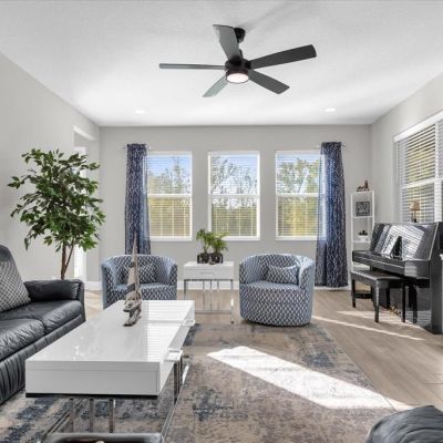 Ceiling Fan(s), Eating Space In Kitchen, High Ceilings, Open Floorplan, PrimaryBedroom Upstairs, Solid Surface Counters, Split Bedroom, Thermostat, Walk-In Closet(s), Window Treatments
