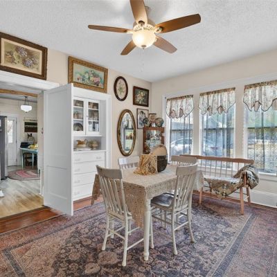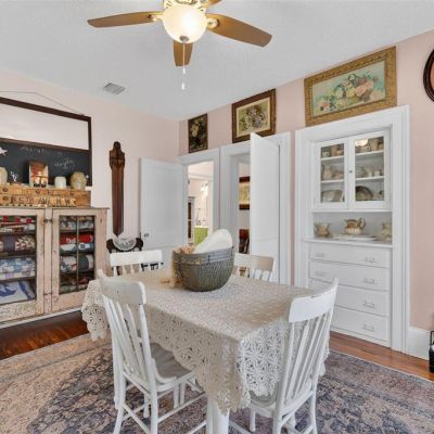 Built-in Features, Ceiling Fan(s), Primary Bedroom Main Floor, Solid Surface Counters, Solid Wood Cabinets, Thermostat, Walk-In Closet(s), Window Treatments