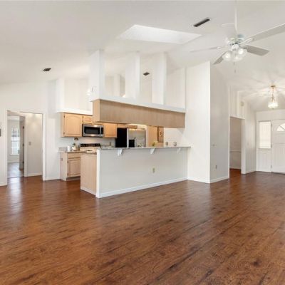 Eating Space In Kitchen, High Ceilings, Kitchen/Family Room Combo, Open Floorplan, Primary Bedroom Main Floor, Solid Surface Counters, Stone Counters, Thermostat, Vaulted Ceiling(s), Walk-In Closet(s), Window Treatments