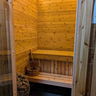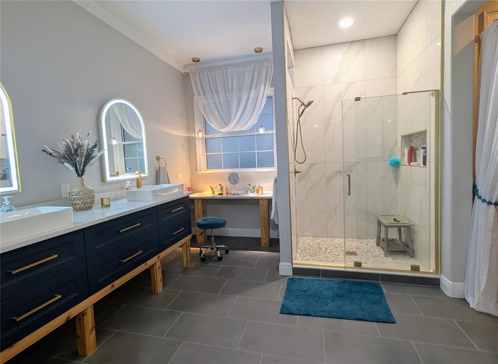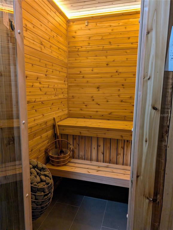 Built-in Features, Ceiling Fan(s), Crown Molding, Eating Space In Kitchen, High Ceilings, Kitchen/Family Room Combo, Living Room/Dining Room Combo, Open Floorplan, Primary Bedroom Main Floor, PrimaryBedroom Upstairs, Sauna, Stone Counters, Thermostat, Walk-In Closet(s), Wet Bar, Window Treatments