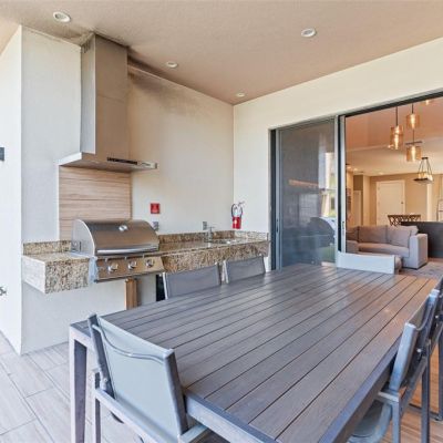 Garden, Lighting, Outdoor Grill, Outdoor Kitchen, Sidewalk, Sliding Doors
