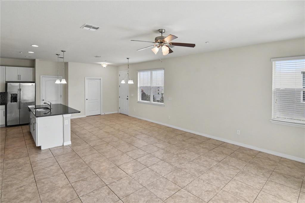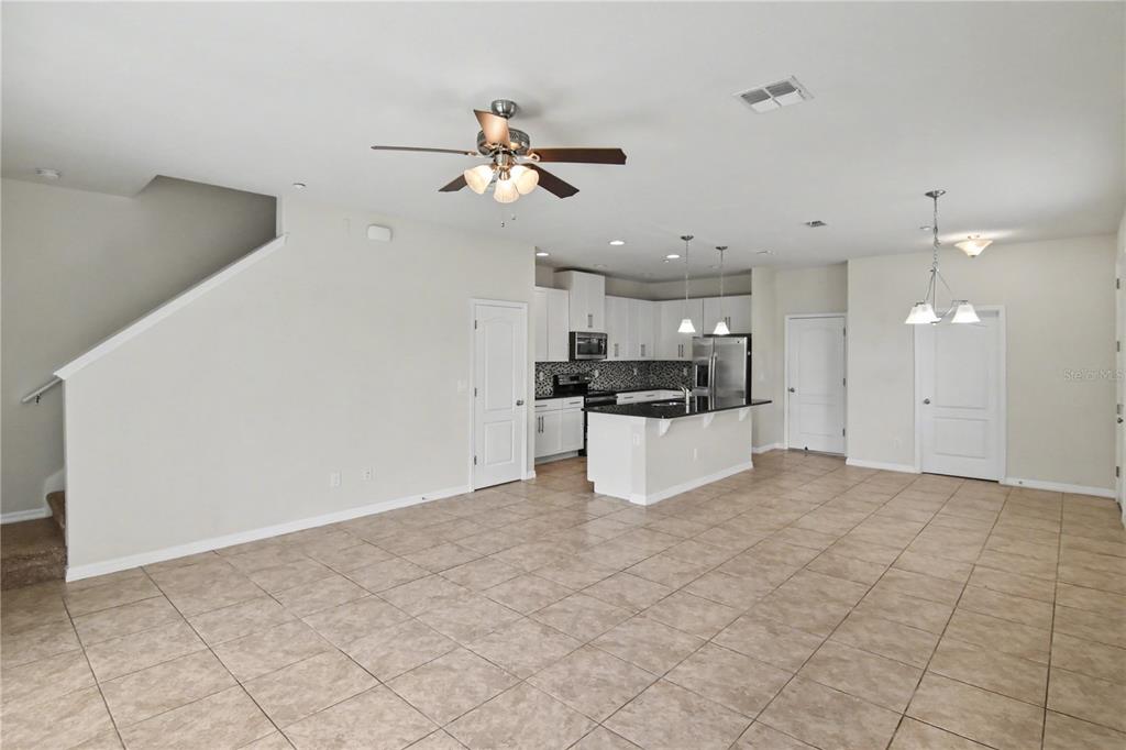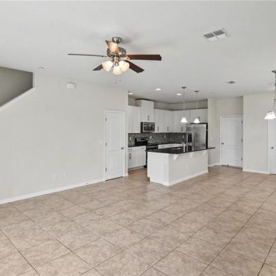 Ceiling Fan(s), High Ceilings, Living Room/Dining Room Combo, Open Floorplan, PrimaryBedroom Upstairs, Solid Surface Counters, Stone Counters, Thermostat, Walk-In Closet(s), Window Treatments