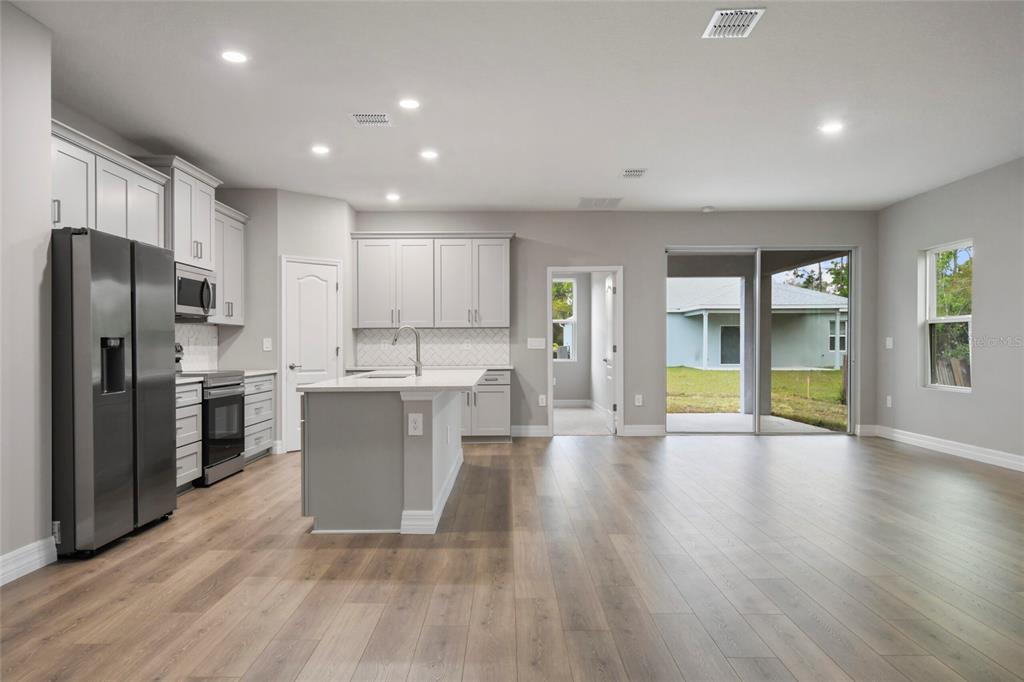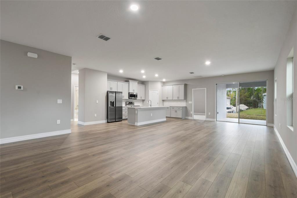 Kitchen/Family Room Combo, Living Room/Dining Room Combo, Primary Bedroom Main Floor, Solid Surface Counters, Solid Wood Cabinets, Thermostat, Walk-In Closet(s)
