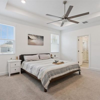 Ceiling Fan(s), Eating Space In Kitchen, Kitchen/Family Room Combo, Open Floorplan, PrimaryBedroom Upstairs, Solid Surface Counters, Walk-In Closet(s), Window Treatments