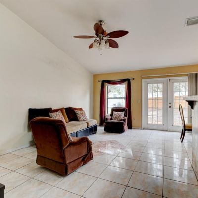 Ceiling Fan(s), High Ceilings, Living Room/Dining Room Combo, Open Floorplan, Thermostat, Vaulted Ceiling(s), Window Treatments