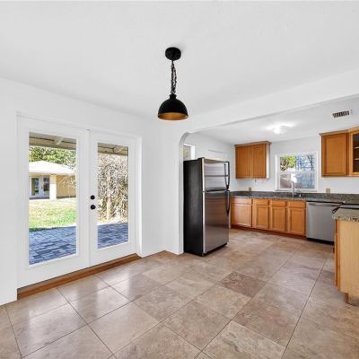 Eating Space In Kitchen, Open Floorplan, Solid Surface Counters, Solid Wood Cabinets