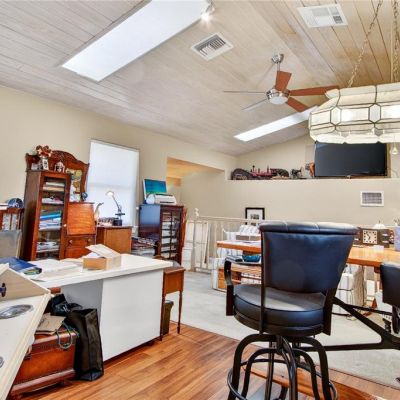 Cathedral Ceiling(s), Ceiling Fan(s), Crown Molding, High Ceilings, Kitchen/Family Room Combo, Open Floorplan, Primary Bedroom Main Floor, Solid Wood Cabinets, Stone Counters, Thermostat, Tray Ceiling(s), Walk-In Closet(s), Window Treatments