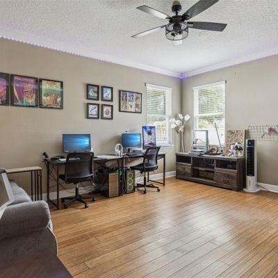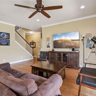 Ceiling Fan(s), Crown Molding, Kitchen/Family Room Combo, Open Floorplan, PrimaryBedroom Upstairs, Solid Surface Counters, Thermostat, Tray Ceiling(s), Walk-In Closet(s)
