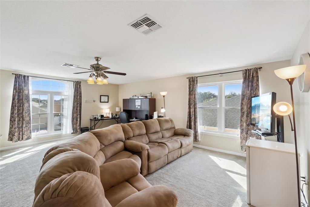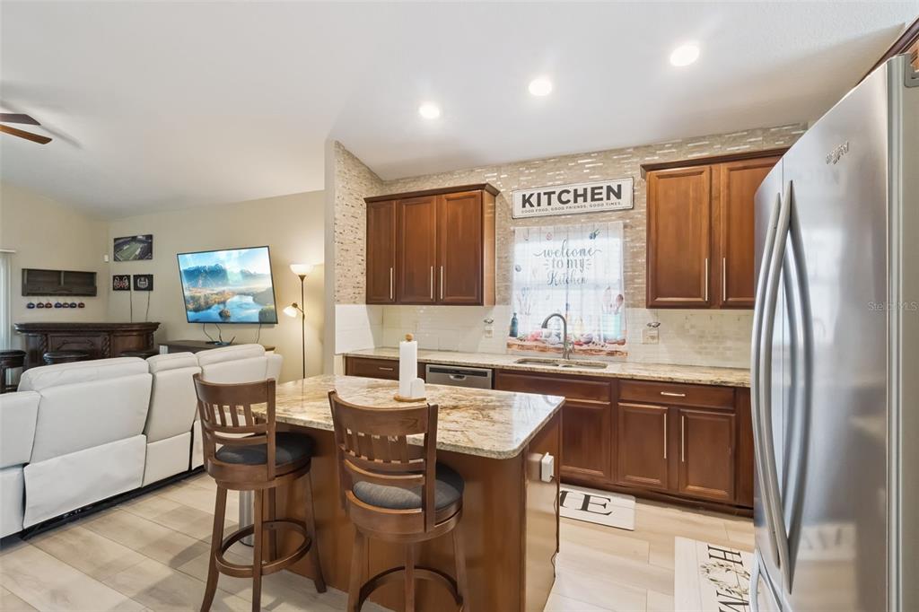 Ceiling Fan(s), Eating Space In Kitchen, High Ceilings, Kitchen/Family Room Combo, Living Room/Dining Room Combo, Solid Surface Counters, Stone Counters, Vaulted Ceiling(s), Walk-In Closet(s), Window Treatments