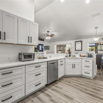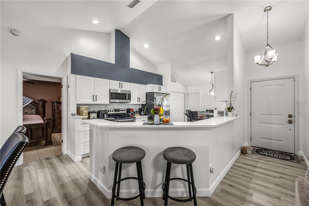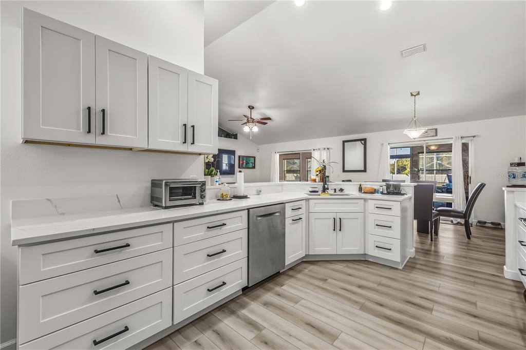 Ceiling Fan(s), Eating Space In Kitchen, Open Floorplan, Primary Bedroom Main Floor, Solid Surface Counters, Thermostat, Vaulted Ceiling(s), Walk-In Closet(s), Window Treatments