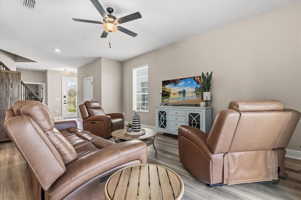 Ceiling Fan(s), Eating Space In Kitchen, High Ceilings, Kitchen/Family Room Combo, Open Floorplan, Stone Counters, Walk-In Closet(s), Window Treatments