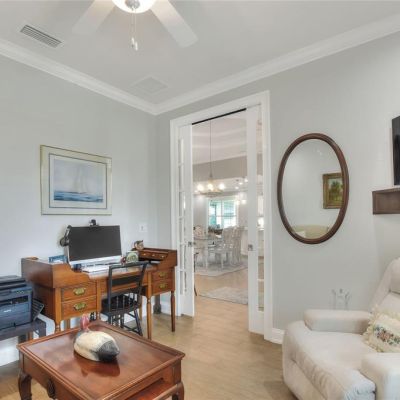Built-in Features, Ceiling Fan(s), Coffered Ceiling(s), Crown Molding, Eating Space In Kitchen, High Ceilings, Living Room/Dining Room Combo, Open Floorplan, Solid Wood Cabinets, Stone Counters, Tray Ceiling(s), Walk-In Closet(s)