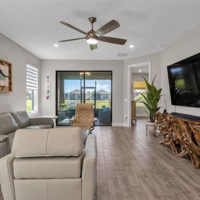 Ceiling Fan(s), High Ceilings, Open Floorplan, Primary Bedroom Main Floor, Split Bedroom, Stone Counters, Thermostat, Tray Ceiling(s), Walk-In Closet(s), Window Treatments