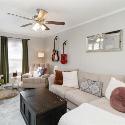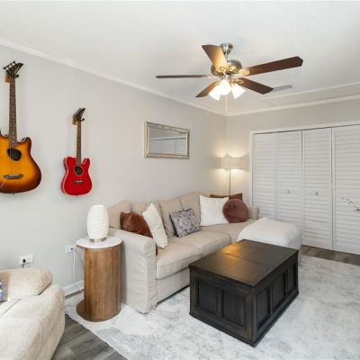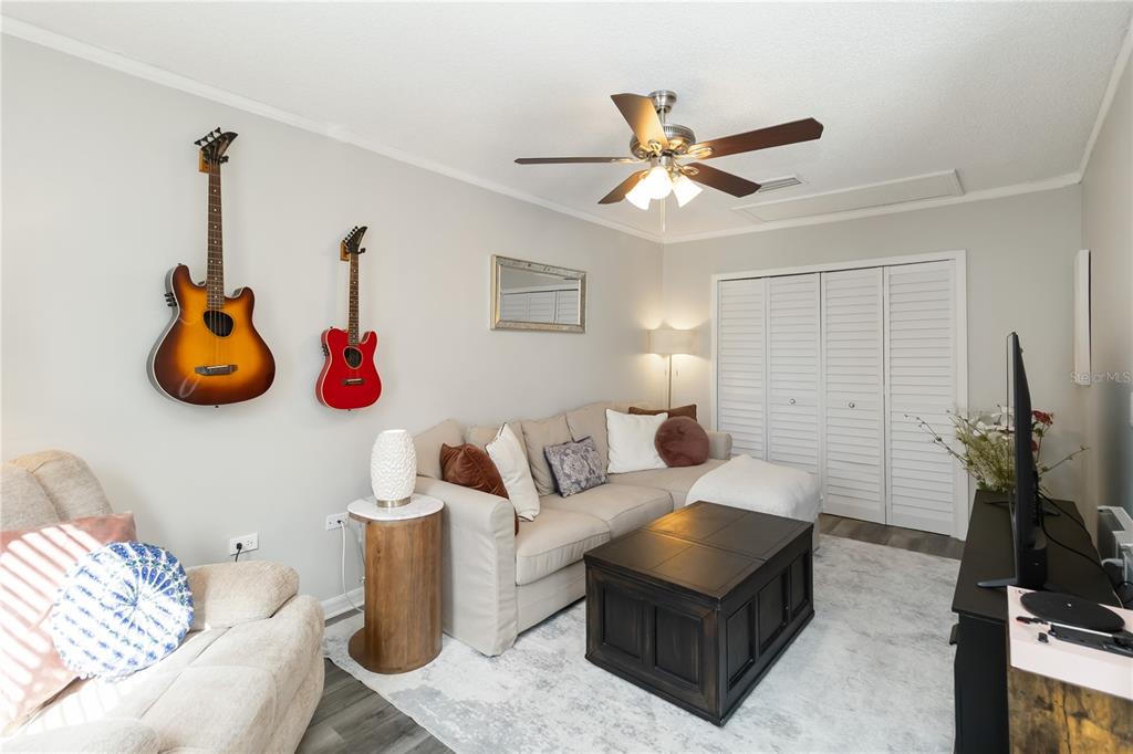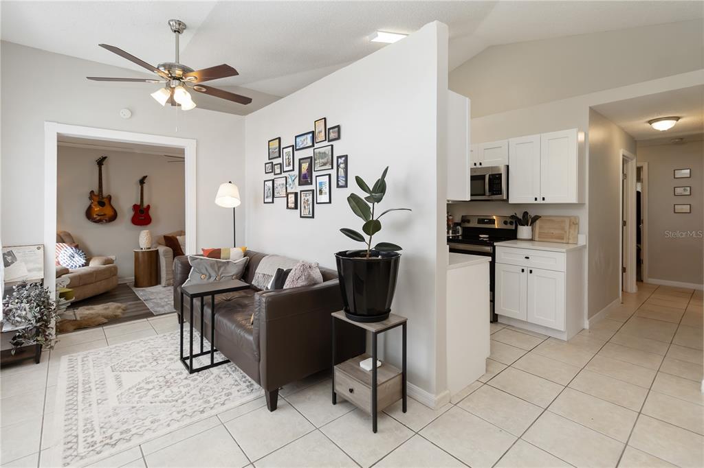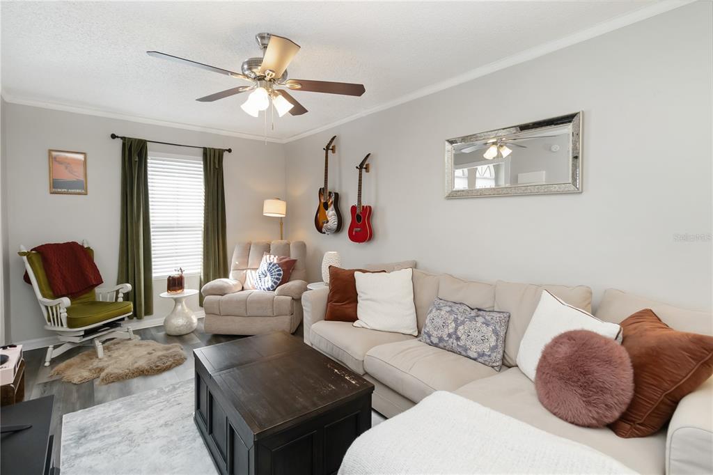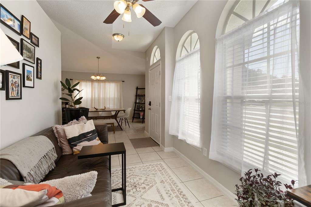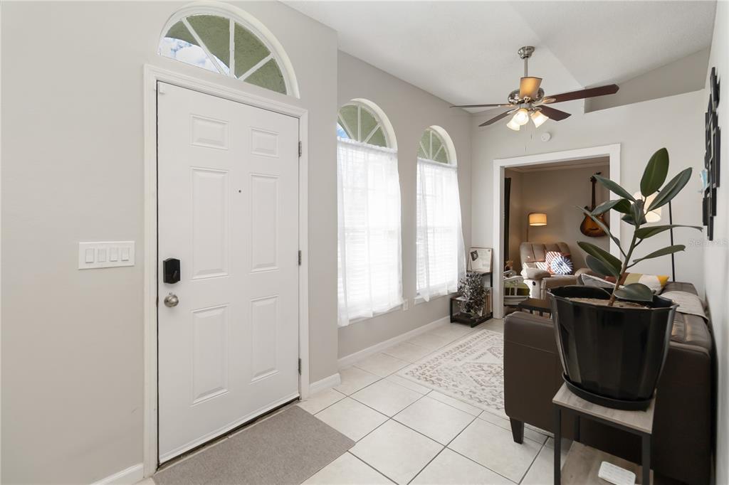 Ceiling Fan(s), High Ceilings, Open Floorplan, Solid Surface Counters, Stone Counters, Thermostat, Window Treatments