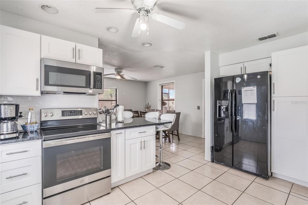 Ceiling Fan(s), Eating Space In Kitchen, Living Room/Dining Room Combo, Solid Surface Counters