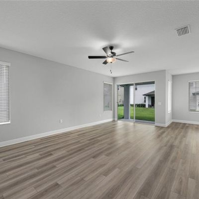 Ceiling Fan(s), High Ceilings, Kitchen/Family Room Combo, Open Floorplan, Pest Guard System, Primary Bedroom Main Floor, Stone Counters, Thermostat, Walk-In Closet(s), Window Treatments