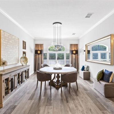 Ceiling Fan(s), Crown Molding, Eating Space In Kitchen, High Ceilings, Kitchen/Family Room Combo, Primary Bedroom Main Floor, Walk-In Closet(s), Window Treatments