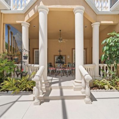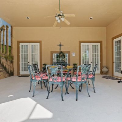 Balcony, French Doors, Irrigation System, Lighting, Outdoor Grill, Outdoor Kitchen, Outdoor Shower, Rain Gutters, Sidewalk