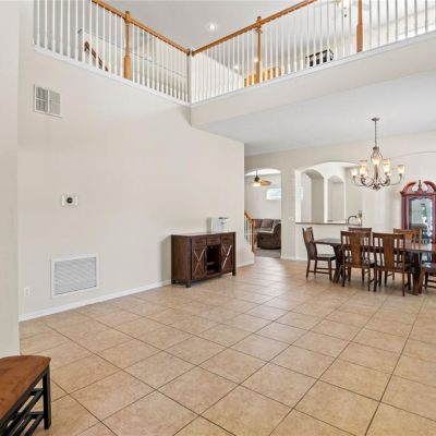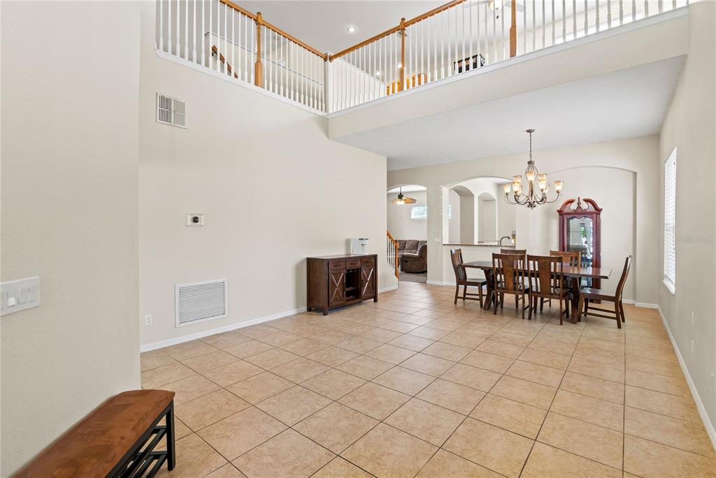 Ceiling Fan(s), Eating Space In Kitchen, High Ceilings, Kitchen/Family Room Combo, Living Room/Dining Room Combo, Open Floorplan, Primary Bedroom Main Floor, Solid Surface Counters, Split Bedroom, Stone Counters, Thermostat, Vaulted Ceiling(s), Walk-In Closet(s)