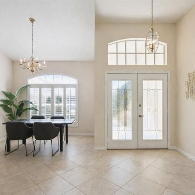 Kitchen/Family Room Combo, Open Floorplan, Primary Bedroom Main Floor, Split Bedroom, Vaulted Ceiling(s), Window Treatments