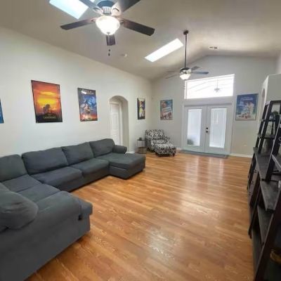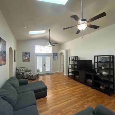 Ceiling Fan(s), Eating Space In Kitchen, High Ceilings, Kitchen/Family Room Combo, Living Room/Dining Room Combo, Open Floorplan, Primary Bedroom Main Floor, Skylight(s), Solid Surface Counters, Solid Wood Cabinets, Thermostat, Walk-In Closet(s), Window Treatments