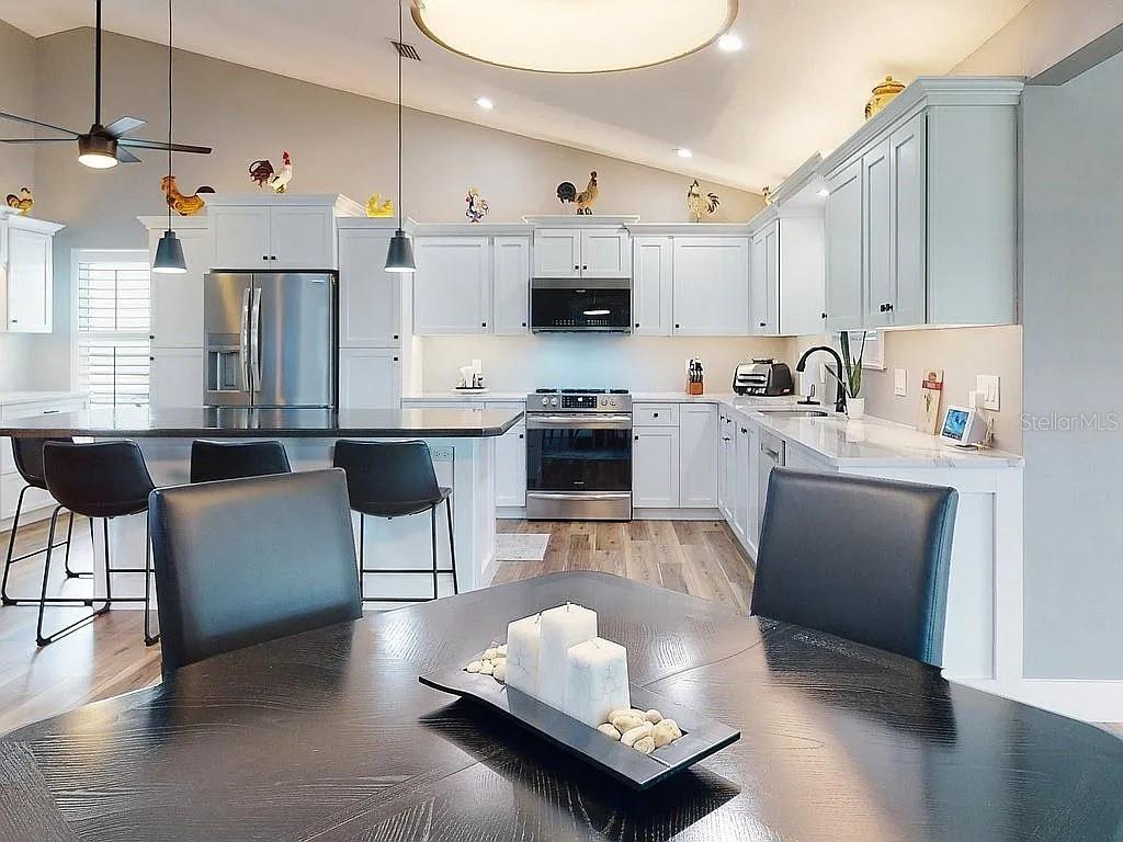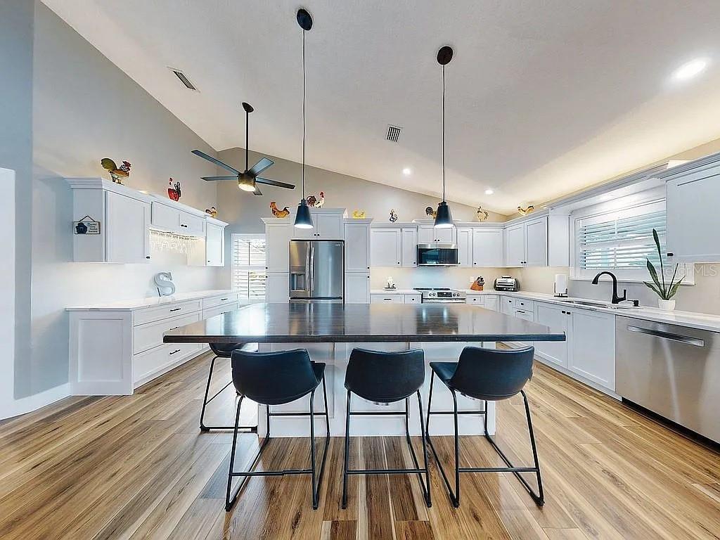 Ceiling Fan(s), Dry Bar, High Ceilings, Kitchen/Family Room Combo, Living Room/Dining Room Combo, Open Floorplan, Primary Bedroom Main Floor, Vaulted Ceiling(s), Walk-In Closet(s)