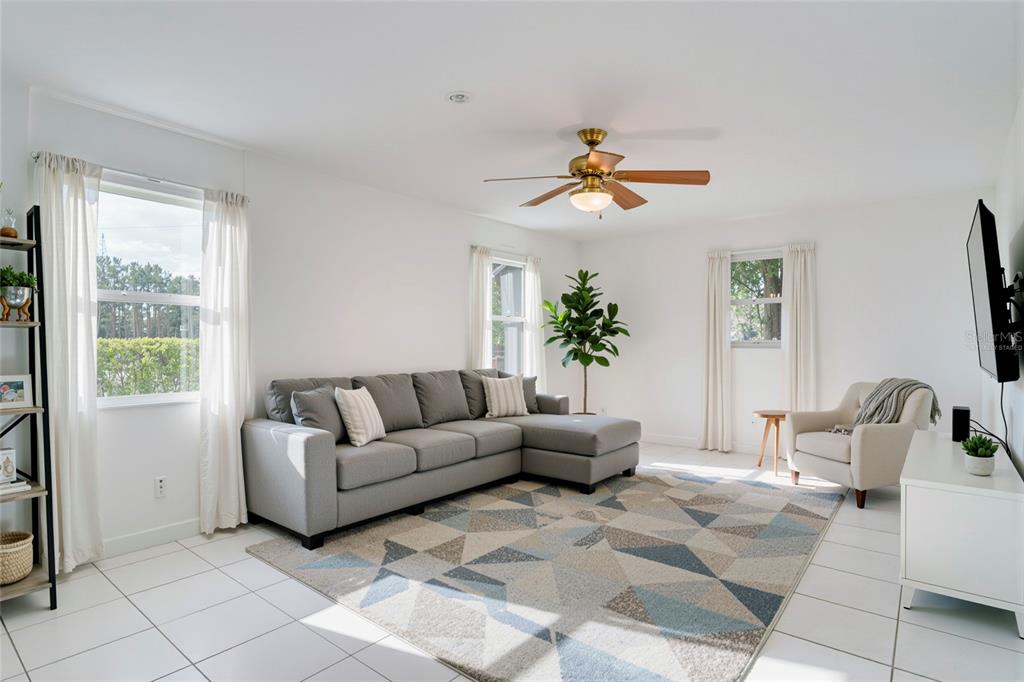 Ceiling Fan(s), Eating Space In Kitchen, Living Room/Dining Room Combo, Primary Bedroom Main Floor, Thermostat, Window Treatments