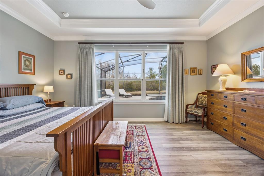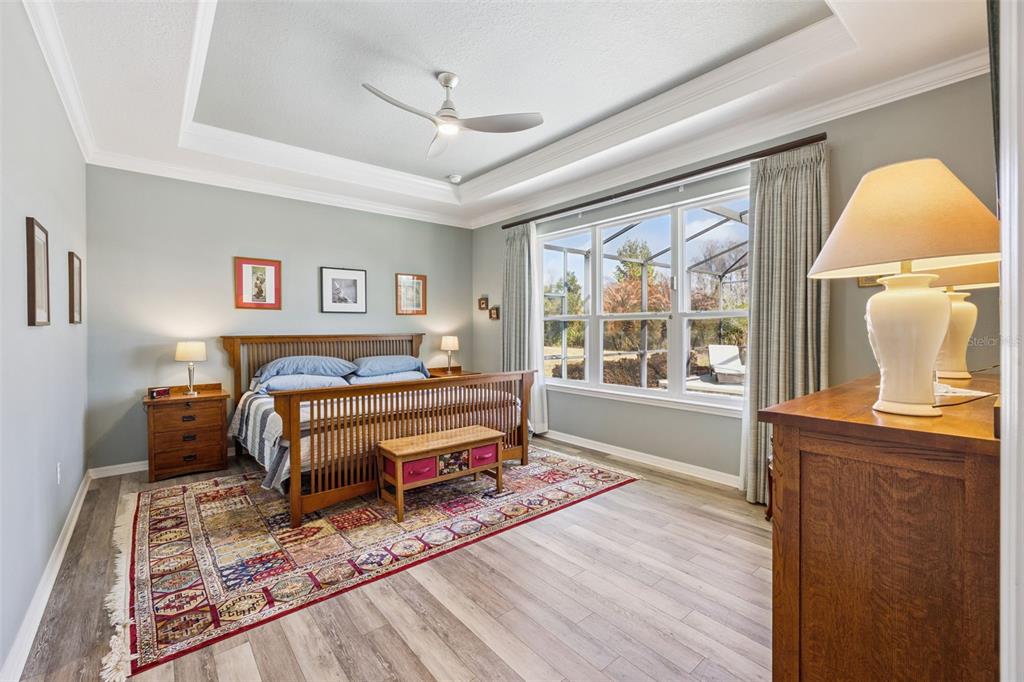 Ceiling Fan(s), Crown Molding, Eating Space In Kitchen, High Ceilings, Kitchen/Family Room Combo, Living Room/Dining Room Combo, Open Floorplan, Primary Bedroom Main Floor, Solid Wood Cabinets, Split Bedroom, Thermostat, Tray Ceiling(s), Walk-In Closet(s), Window Treatments