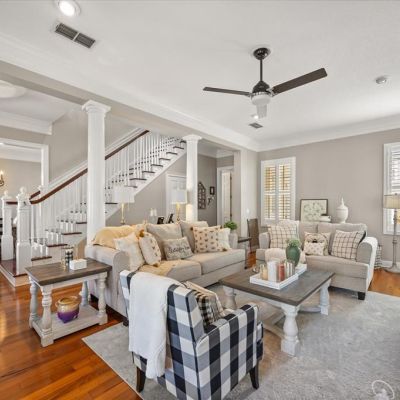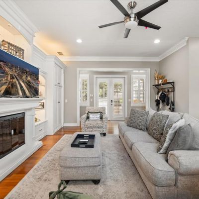 Built-in Features, Ceiling Fan(s), Kitchen/Family Room Combo, Primary Bedroom Main Floor, Solid Surface Counters, Solid Wood Cabinets, Walk-In Closet(s), Window Treatments