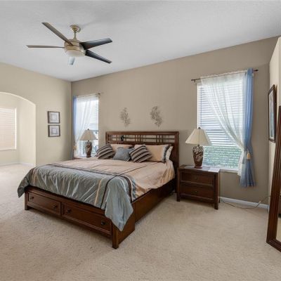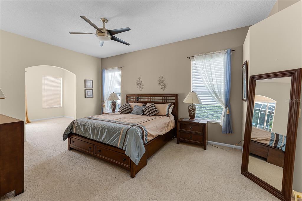 Ceiling Fan(s), Coffered Ceiling(s), Eating Space In Kitchen, High Ceilings, Kitchen/Family Room Combo, Primary Bedroom Main Floor, Split Bedroom, Thermostat, Walk-In Closet(s)