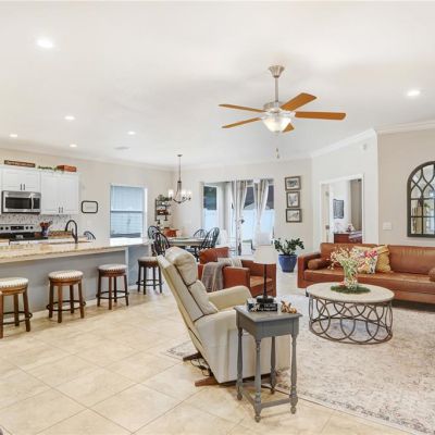 Ceiling Fan(s), Crown Molding, Eating Space In Kitchen, High Ceilings, In Wall Pest System, Open Floorplan, Solid Surface Counters, Walk-In Closet(s)