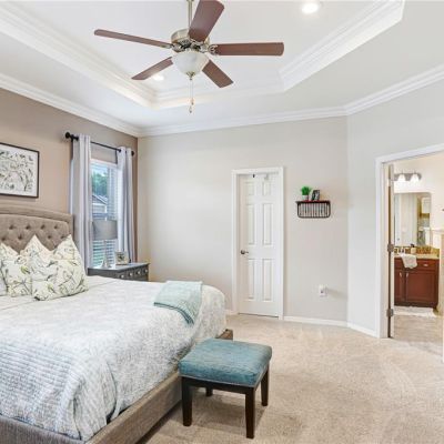 Ceiling Fan(s), Crown Molding, Eating Space In Kitchen, High Ceilings, In Wall Pest System, Open Floorplan, Solid Surface Counters, Walk-In Closet(s)