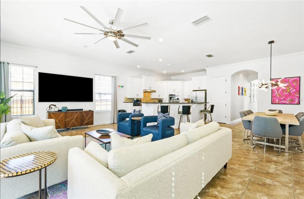 Built-in Features, Ceiling Fan(s), Eating Space In Kitchen, Living Room/Dining Room Combo, Open Floorplan, Solid Surface Counters, Window Treatments