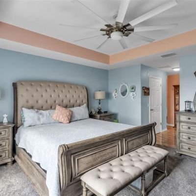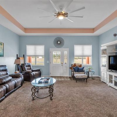 Ceiling Fan(s), Eating Space In Kitchen, High Ceilings, Living Room/Dining Room Combo, Open Floorplan, Primary Bedroom Main Floor, Stone Counters, Tray Ceiling(s), Walk-In Closet(s), Window Treatments