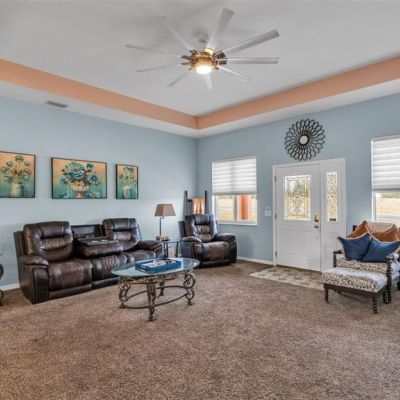 Ceiling Fan(s), Eating Space In Kitchen, High Ceilings, Living Room/Dining Room Combo, Open Floorplan, Primary Bedroom Main Floor, Stone Counters, Tray Ceiling(s), Walk-In Closet(s), Window Treatments