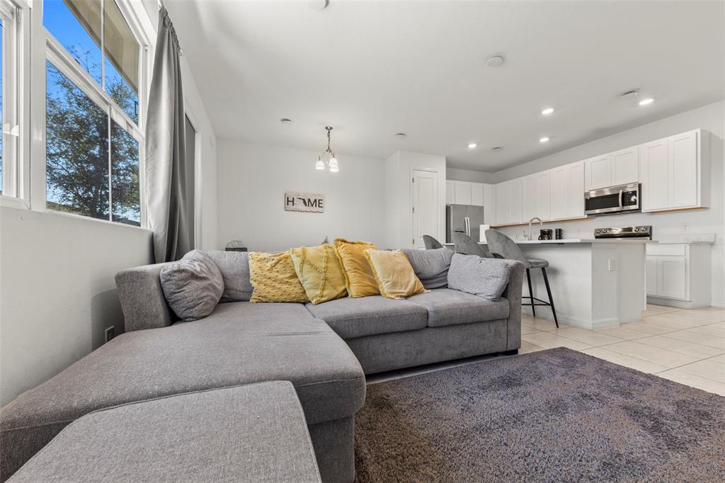 High Ceilings, Kitchen/Family Room Combo, Living Room/Dining Room Combo, Open Floorplan, PrimaryBedroom Upstairs, Solid Surface Counters, Solid Wood Cabinets, Thermostat, Walk-In Closet(s)