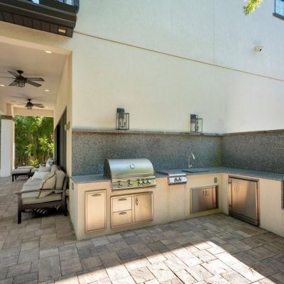 Irrigation System, Lighting, Outdoor Grill, Outdoor Kitchen, Rain Gutters, Sidewalk, Sliding Doors
