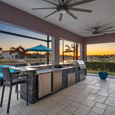 Balcony, Irrigation System, Lighting, Outdoor Grill, Outdoor Kitchen, Rain Gutters, Sidewalk, Sliding Doors