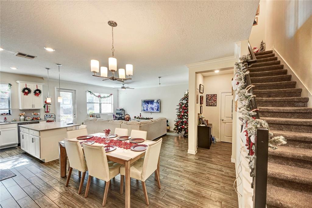Ceiling Fan(s), Crown Molding, Eating Space In Kitchen, Kitchen/Family Room Combo, Living Room/Dining Room Combo, PrimaryBedroom Upstairs, Stone Counters, Tray Ceiling(s), Walk-In Closet(s)