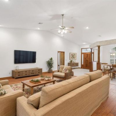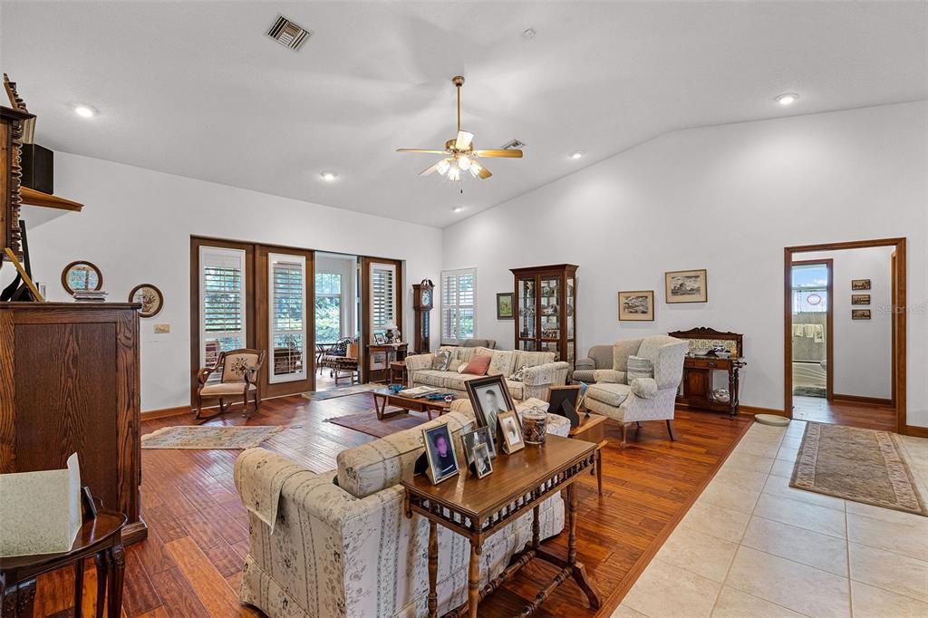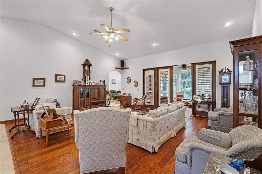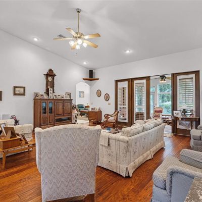 Ceiling Fan(s), Eating Space In Kitchen, High Ceilings, Kitchen/Family Room Combo, Primary Bedroom Main Floor, Split Bedroom, Vaulted Ceiling(s), Walk-In Closet(s), Window Treatments
