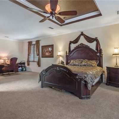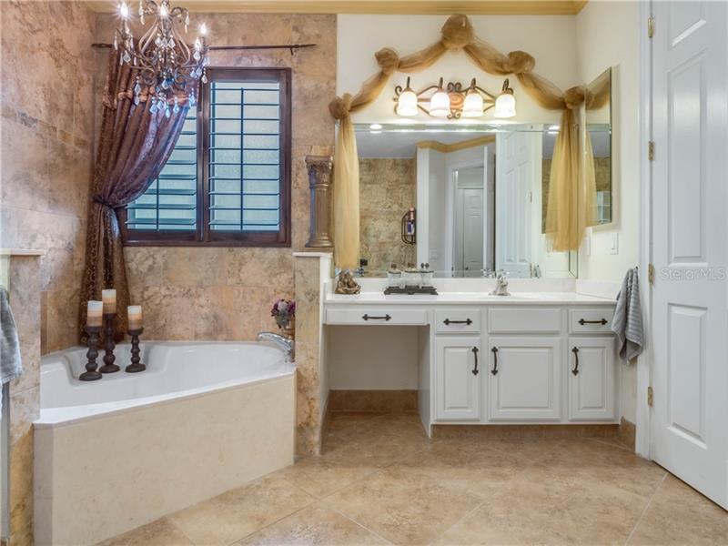 If you are a chef, the roomy kitchen has solid antique white cabinetry and Silestone counters and a high line appliance package. This home boasts wood shutters, a water softener, custom chandeliers from Light styles and wall garage cabinets with work station.