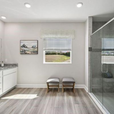 High Ceilings, Open Floorplan, Primary Bedroom Main Floor, Smart Home, Solid Surface Counters, Thermostat, Walk-In Closet(s)