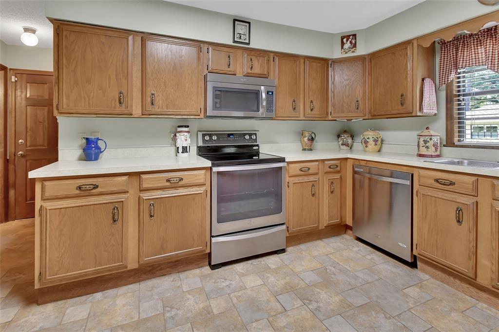 Ceiling Fan(s), Eating Space In Kitchen, Primary Bedroom Main Floor, Solid Wood Cabinets, Vaulted Ceiling(s), Window Treatments
