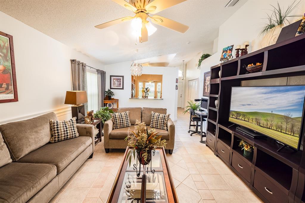 Ceiling Fan(s), High Ceilings, Living Room/Dining Room Combo, Primary Bedroom Main Floor, Stone Counters, Thermostat, Walk-In Closet(s)
